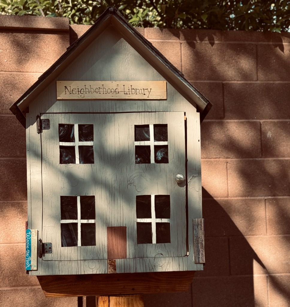 Today’s evening walk in the park led me to discover a little neighborhood library. We have several of these around the area, and I always make a point to stop and see what treasures they hold. This particular library was filled with small children’s books, which seemed perfect given its proximity to the park. I hope others explore and take advantage of what these ‘librarians’ have chosen to share.
