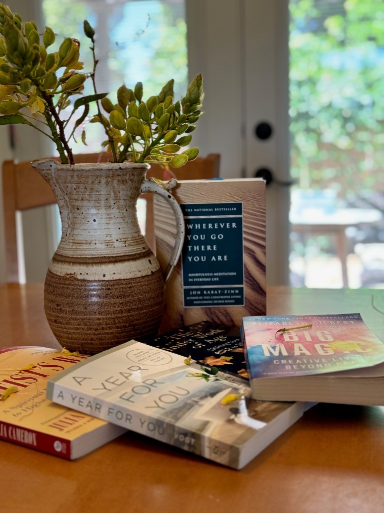 My thoughts on Restorative Reading embrace the need to slow down and allow myself to retreat. For me, this reading retreat involves escaping into fiction, learning something new about the world and, in turn, about myself, or finding wisdom and grace in soulful, insightful books. The interviewee, Stefanie Affinito, referred to a “Book Apothecary,” those books that restore you and that you visit over and over again. I realized I have one! In a basket next to my bed are books that I pick up when I feel the need. That need can arise from feeling anxious, inspired, in need of inspiration, in need of comfort and familiarity, or often just needing something to read that will put me to sleep.